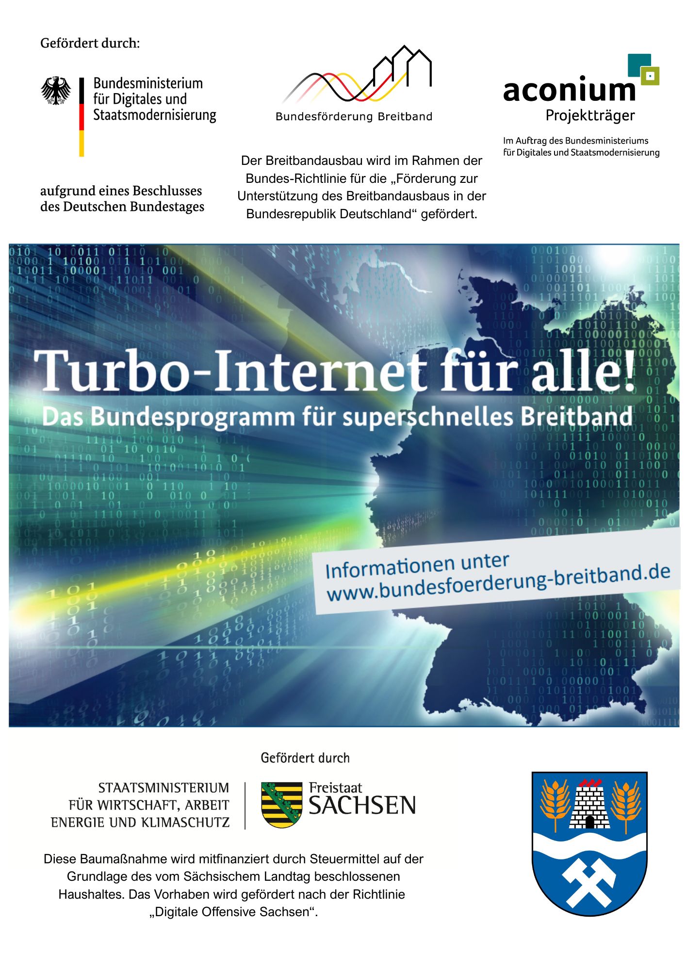 Striegistal hat eine Förderzusage für den Ausbau des Glasfaser-Netzes in unterversorgten Gebieten erhalten. Damit ist es uns möglich im Striegistal insgesamt 1.182 Adressen vollgefördert und 196 Adressen teilgefördert zu erschließen. Dieses Netz wird durch den Bund und das Land Sachsen gefördert.